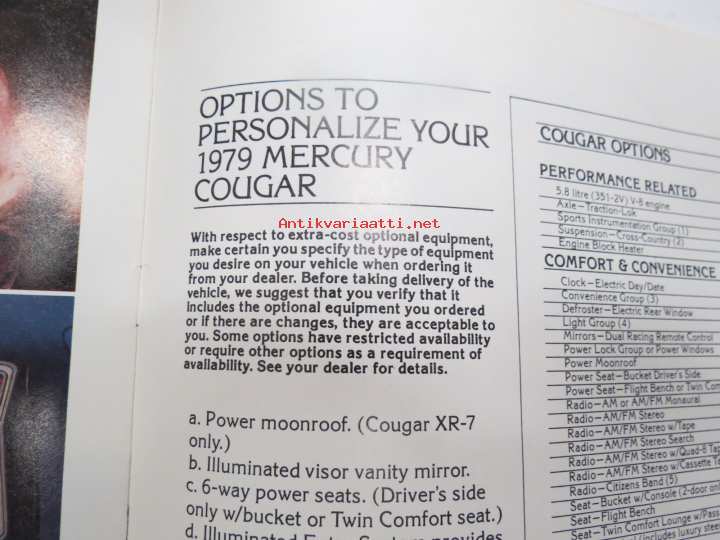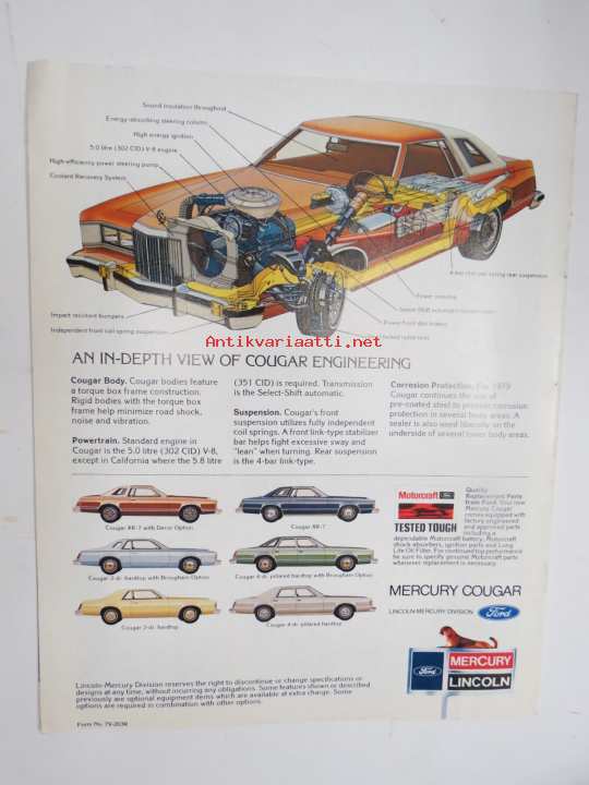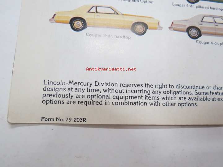 Mercury Cougar 1979 -myyntiesite / sales brochure