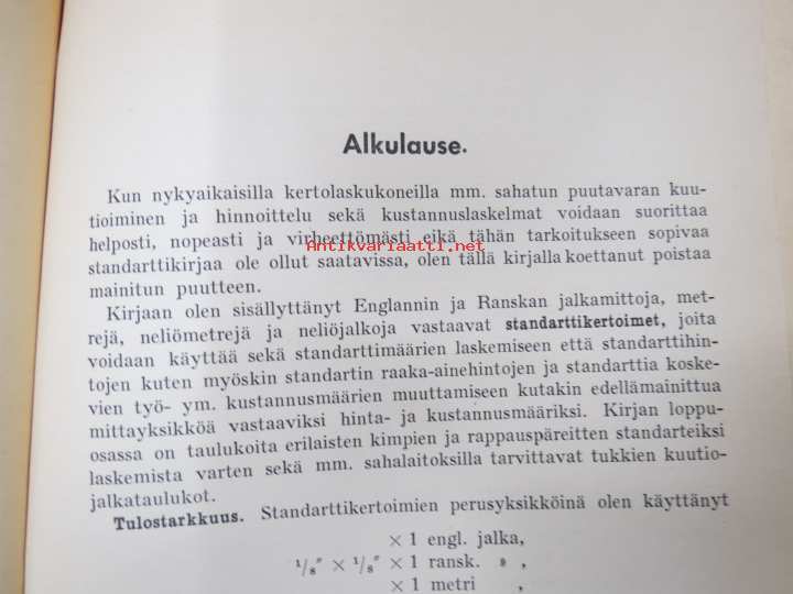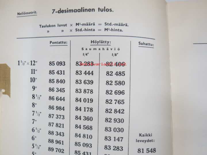 Sahatun puutavaran hinnasto standartti ja kuutiojalan hinnan mukaan...