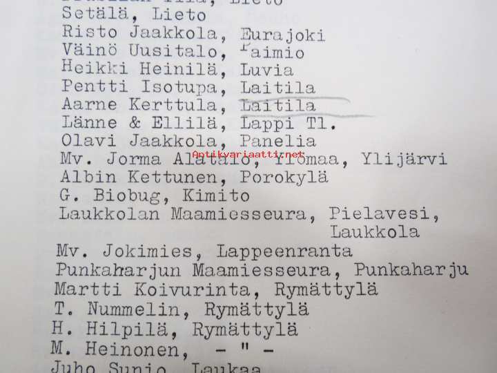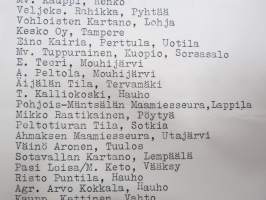 Luettelo Keskon v. 1958 myymistä ja asentamista Sato-, Sinus-, Agro- ja Aki viljankuivaajista + Jaakko lavakuivurit -ostajien listaus eri puolilta Suomea