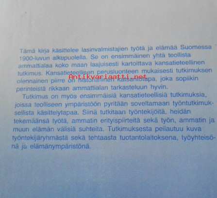 Lasinvalmistajat ja lasinvalmistus Suomessa 1900-luvun alkupuolella (signeerattu, tekijän omiste)