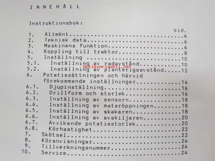 Juko 242S, 2-rivinen perunanistustuskone käyttöohje ja varaosaluettelo alkaen valmistusnumerosta P3-8201 / 2-radig potatissättare Instruktions- och reservdelsbok
