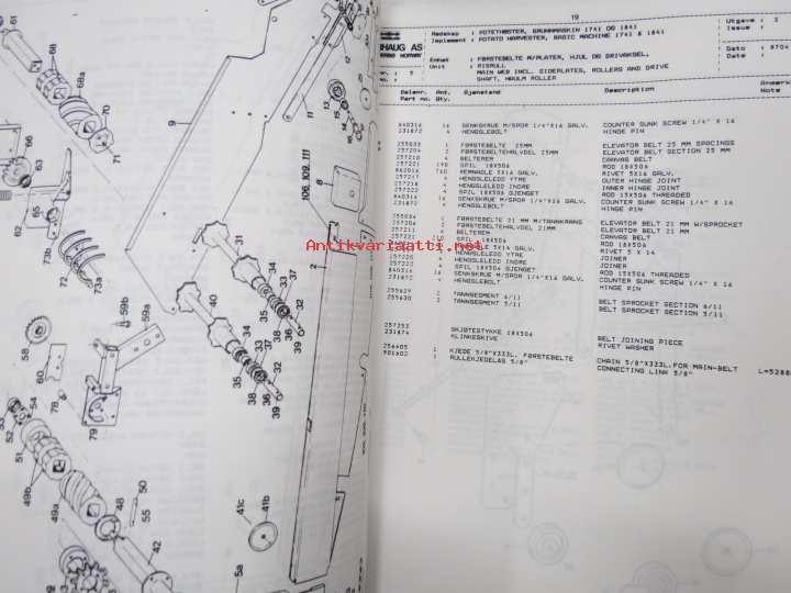 Underhaug Model 1102-1106 Ridgers, Spare parts list - Multauskone - varaosaluettelo englanniksi