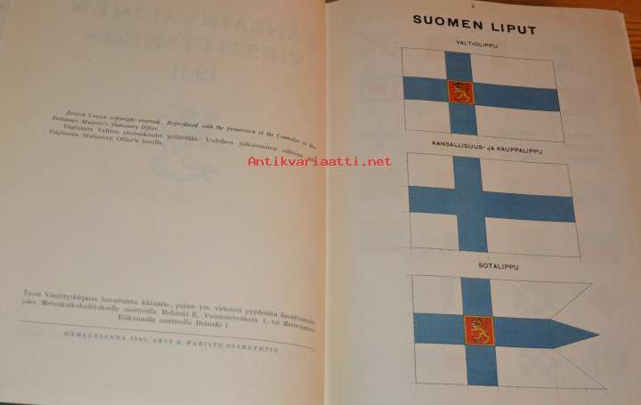 25 x 30 cm. Merenkulkuhallituksen aikanaan Helsingin Meripelastusyhdistykselle lahjoittamien ja toiminnan tukemiseksi myytyjen ja numeroitujen 700 kappaleen erän josta tämä kirja on 696. (Suomalainen ja suomenkielinen painos otettiin tästä siis vasta 1949, selvennyksen vuoksi, ettei sotketa englanninkielisen version 1. painokseen vuodelta 1931)
