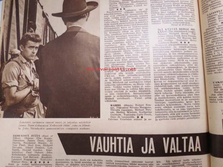 Elokuva-Aitta 1956 nr 16 - kansi Mario Lanza, Evakko elokuva, Doris Day