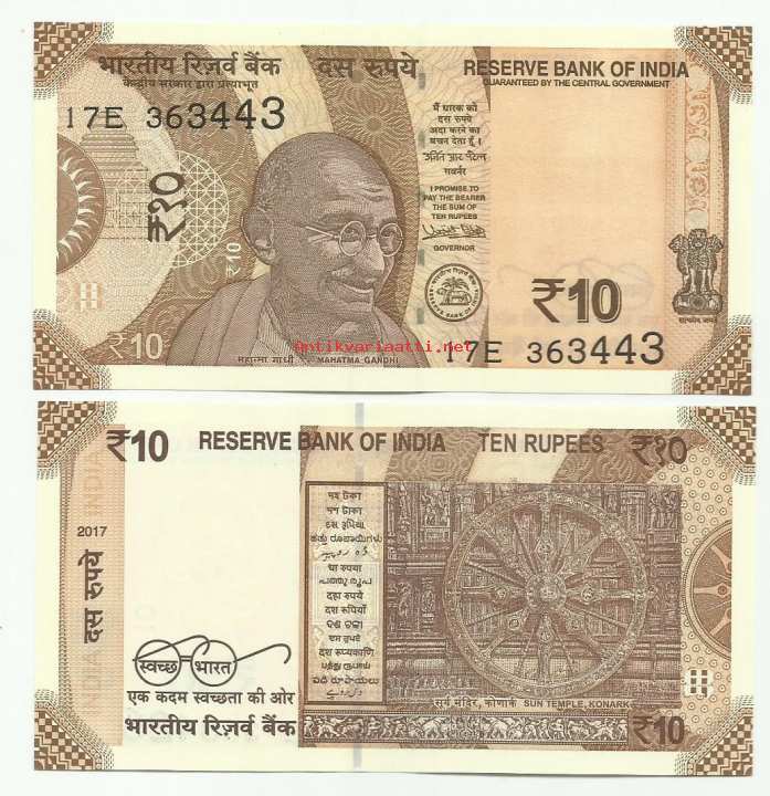 Intia 10 Rupees seteli / Rebublic of India Reserve Bank 2. serie