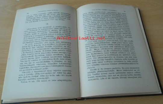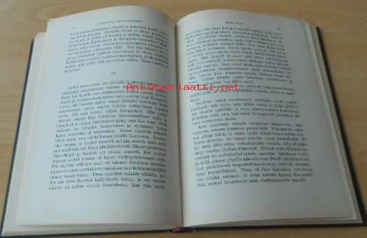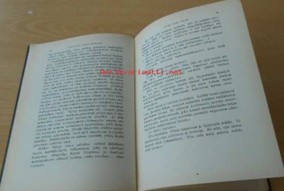 Kansissa kulumaa, sivuiltaan siisti ehjä, edellisen omistajan nimi, Postitus Pakettina