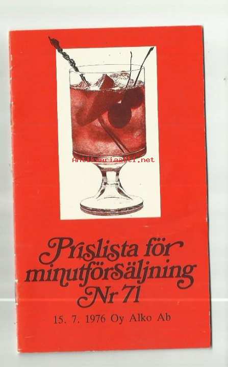 Prislista för minutförsäljning nr 71 1975
