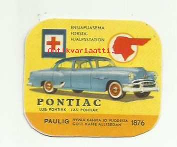 Pontiac - autokortti, keräilykuva, kahvipakettikuva