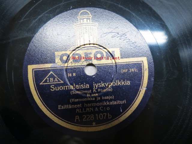 Odeon A 228107 b Allan & C:o Suomalaisia jyskypolkkia / Suomalaisia jyskypolkkia - savikiekkoäänilevy / 78 rpm record