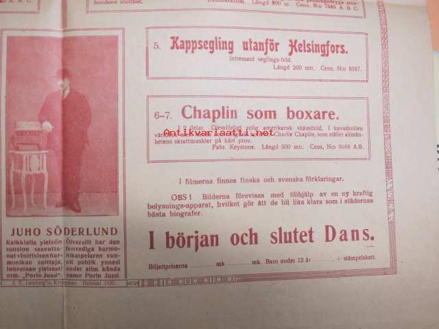 45 x 60 cm, vuodelta 1920! Myös filmi "Kilpapurjehdus Helsingin edustalla".