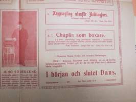 Teatteri Pohjola - Matkustava osasto Helsingistä Markkinapaikalla - Charlie Chaplin-filmi "Chaplinin elämäntarina" - Esitetään 16-17.4.1921 -elokuvajuliste