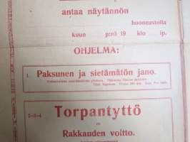 Teatteri Pohjola - vanhin kinoteatteri-liike - Matkustava osasto, näytännöt Äetsä Ns. talo - Miehuutta... / Maijamuorin... 1926 -elokuvajuliste / movie poster
