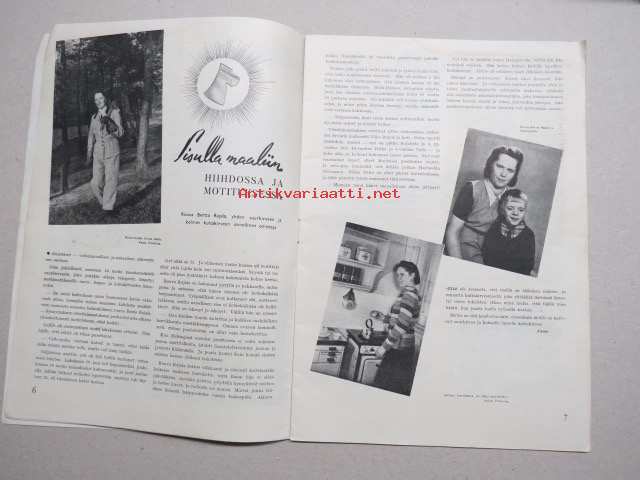 Eeva 1943 nr 6 kansikuva Kauneuskuningatar rouva Sirkka Salonen-Vartia suomalaisessa pumpulikävelypuvussa, Mies ja kevät, Mitä teillä on sydämmellänne?, ym.