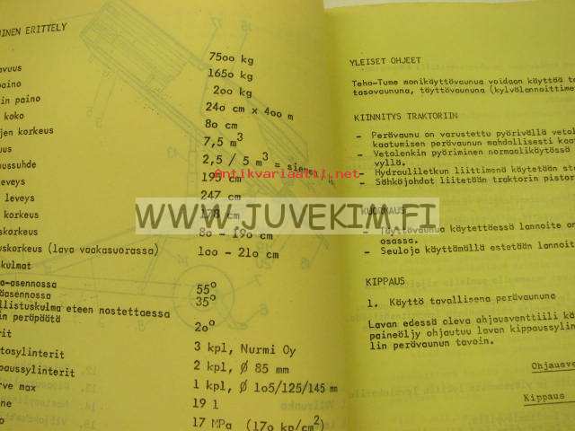 Tume Teho-Tume täyttövaunu 1976 -käyttöohjekirja ja varaosaluettelo