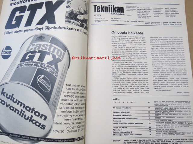 Tekniikan Maailma 1970 nr 6, Avaruuskeskus suomalaisen silmin, testiautot ja turvallisuus, polttoaineen kulutus, Mersu ja koriräätälit tarjosivat silmänruokaa, ym.