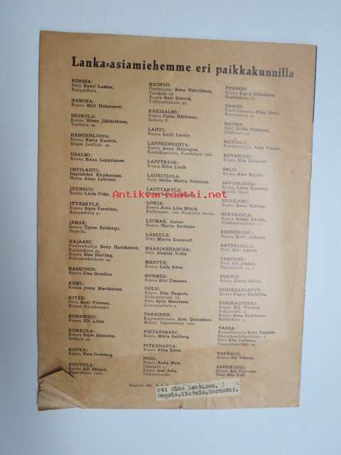 Viiri 1939 nr 1 Neovius Oy asiakaslehti