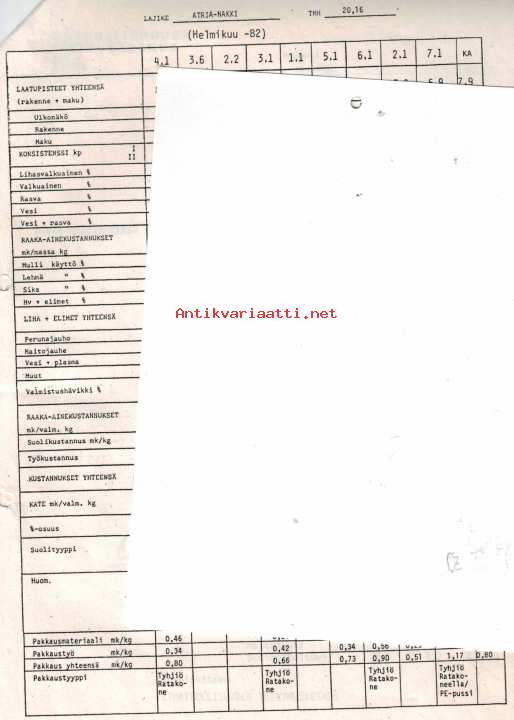 Lihajalostusteollisuuden tutkimuskeskuksen / Atria nakkimakkara. Toukokuu 1982. Valmistus, pakkaus ym ohje, 2-sivua