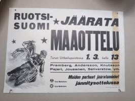 Ruotsi-Suomi jäärata (jääspeedway) maaottelu Turun urheilupuistossa 1.3.1959 Bramberg, Andersson, Knuttson, Pajari, Jousanen, Seliverstow -juliste / poster
