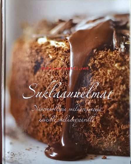 Reseptikokoelma sisältää kaikkea klassikoista moderneihin muunnelmiin suklaaleivoksista suklaapirtelöihin ja -kakkuihin sekä suklaisiin pikkuleivonnaisiin. Kuvitettu. Dimensiot 27 cm * 22 cm.