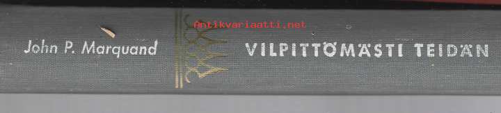 Vilpittömästi teidänKirjaMarquand, John P.Gummerus 1957.Ulkoasu 466 sivuaKieli suomiAlkuteoksen kieli suomiJulkaistu Jyväskylä : Gummerus 1957.Lisätiedot John P. Marquand ; suom. Kristiina Kivivuori