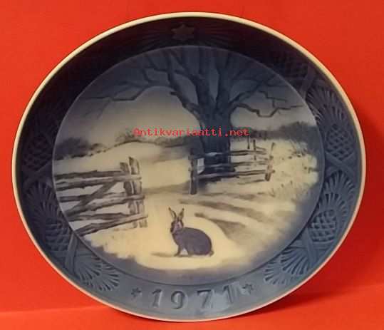 Joululautanen - Tanska vuosi 1971. Posliinilautanen, seinälautanen, koristelautanen (Vintage Christmas Plate, Denmark Scandinavian Design, Jultallrik, Porcelain)