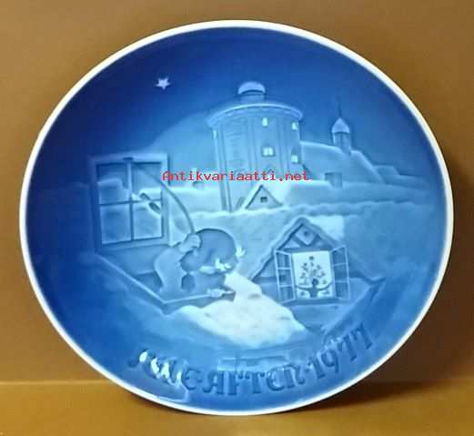 Rörstrandin Joululautanen vuosi 1977. Posliinilautanen, seinälautanen, koristelautanen (Vintage Christmas Plate, Sweden Scandinavian Design, Porcelain)