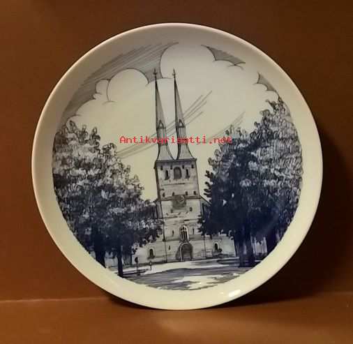 Joululautanen - Västgötajul 1977. Domkyrkan i Mariestadt. Posliini, Tanska , keräilylautanen (Vintage Christmas Plate, Scandinavian Design, Jultallrik, Porcelain)