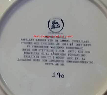 Keräilylautanen - Antens Kapell. Posliini, seinälautanen. (Vintage, Ruotsi, Scandinavian Porcelain, tallrik, collecting plate)