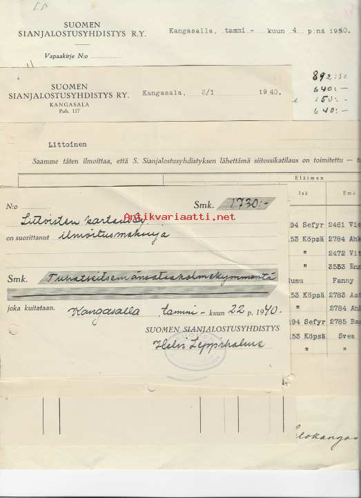 Suomen Sianjalostusyhdistys ry 1940 - firmalomake 4 eril