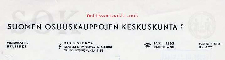 Suomen Osuuskauppojen Keskuskunta 1955 - firmalomake