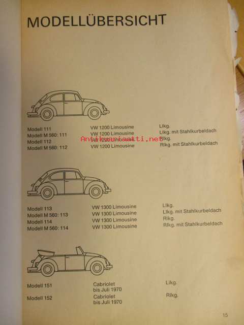 Volkswagen Typ 1 /1200, 1300, Cabriolet - Textblock zum Ersatzteile-Katalok - varaosaluettelo