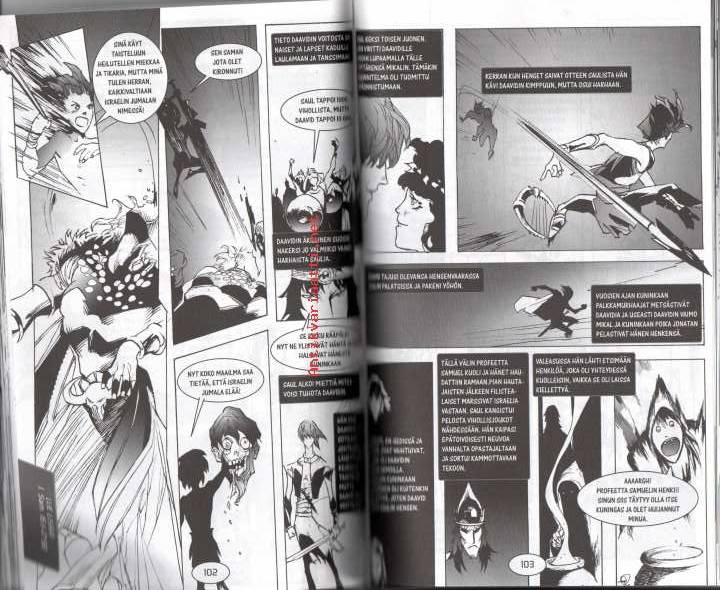 Sarjakuvakirja sisältää kertomuksia sekä Uudesta että Vanhasta testamentista japanilaisella piirrosteknikalla