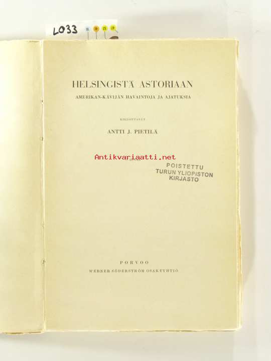 Helsingistä Astoriaan : Amerikan-kävijän havaintoja ja ajatuksia 1927