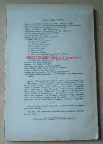 Kuvitettu, kansissa kulumaa ja pieniä paloja pois, nimisivulta leikattu palapois yläreunasta, Muuten sivuiltaan sisiti ehjä, ei omisteita, Postitus Pakettina