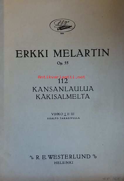 Dimensiot 27 ¤ 19 cm. Laulujen sanoitus suomeksi. Op. 55. A.E.L. 789.