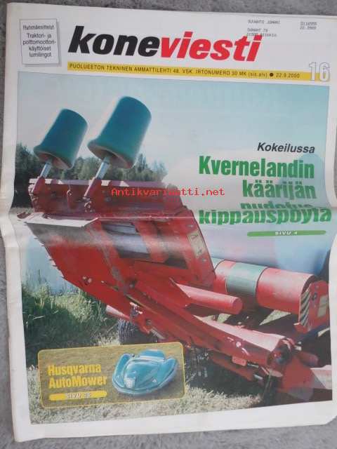 Koneviesti 2000 nr 16 - Pakkomyyntiä, Kverneland UN 7515 - Kahden kesän kymppitonnari, Kyntöanturan kuohkeutus - Molbron jankko-leikkurilla, ym.