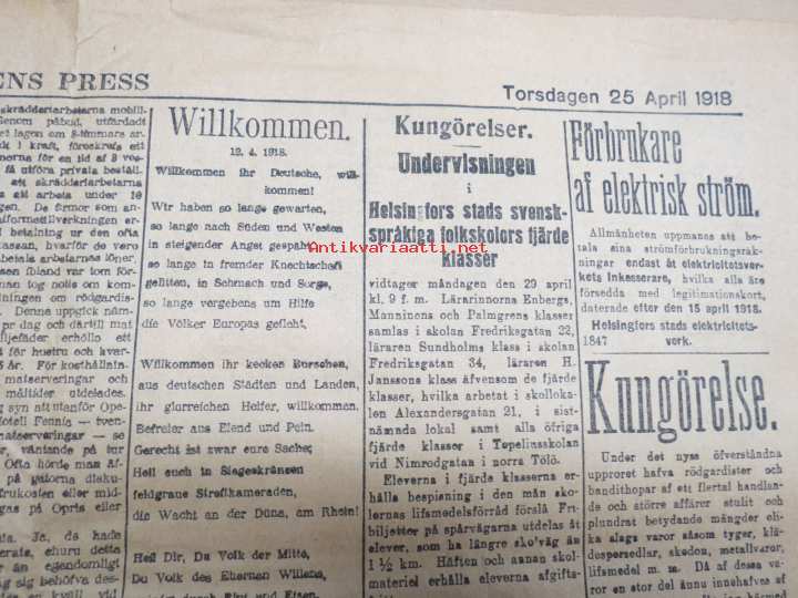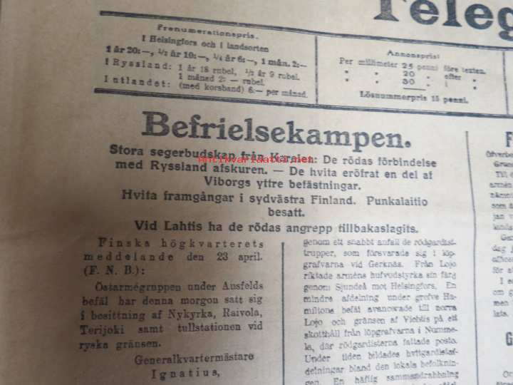 Dagens Press och Telegramnyheter, 25.4.1918 -vapaussodan / kansalaissodan / kapinan aikainen sanomalehti