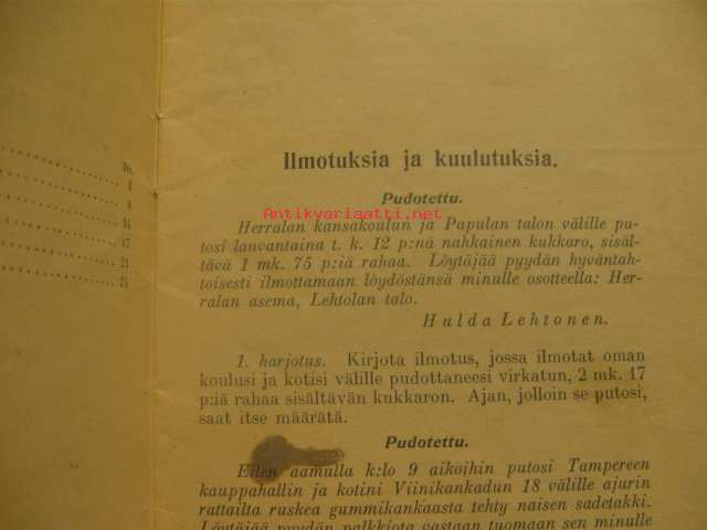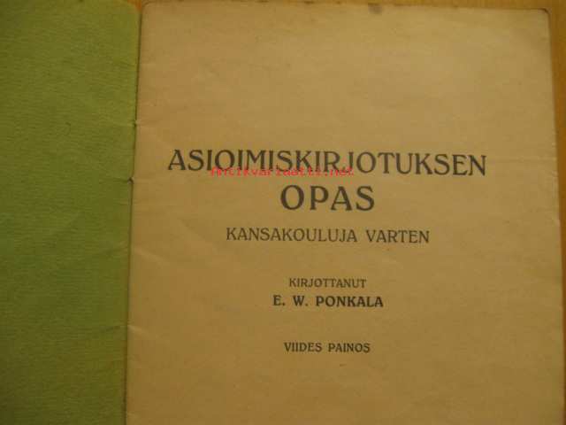 Jatko-opetuksen Asioimiskirjoituksen opas, 1930.
