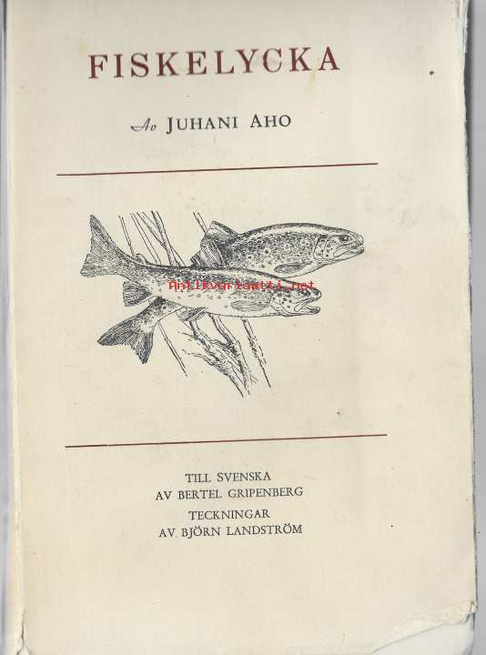 FiskelyckaKirjaHenkilö Aho, Juhani, 1861-1921. ; Henkilö Gripenberg, Bertel, 1878-1947. ; Henkilö Castrén, Gunnar, 1878-1959.Schildt 1948. NÄYTÄ MUUT VERSIOT (2)Ulkoasu [2], 357, [1] sivua : kuvitettu ; 8:oKieli ruotsiAlkuteoksen kieli suomiJulkaistu Helsingfors : Schildt 1948.Luokitus udk 839.79-3Ruotsinkielinen kertomakirjallisuus (ykl 84.31)Lisätiedot Juhani Aho ; till svenska av Bertel Gripenberg ; inledning av Gunnar Castrén ; teckningar av Björn Landström