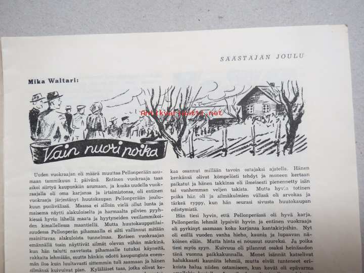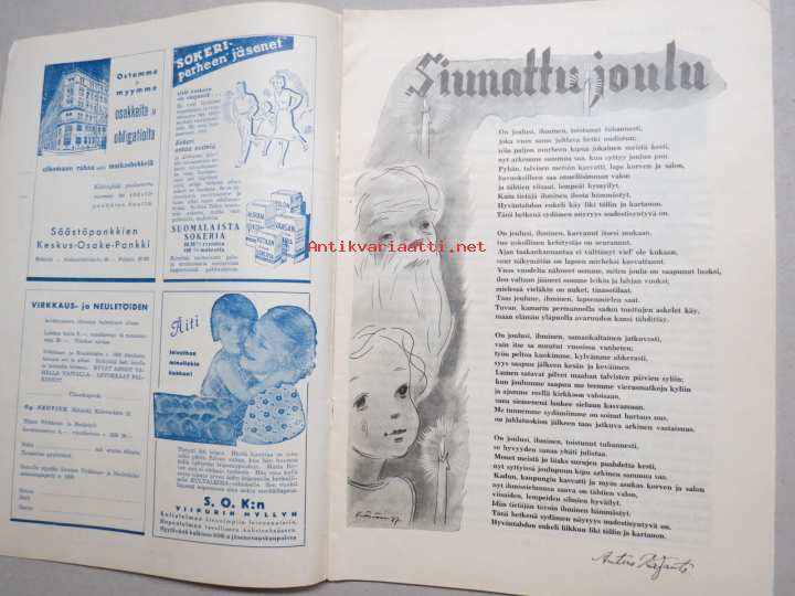 Säästäjän Joulu 1937 -joulunumero, kuvitusta mm. Martta Wendelin & Rudolf Koivu, Mika Waltari - Vain nuori poika, Raul Roine, Anni Swan, Valentin, ym.