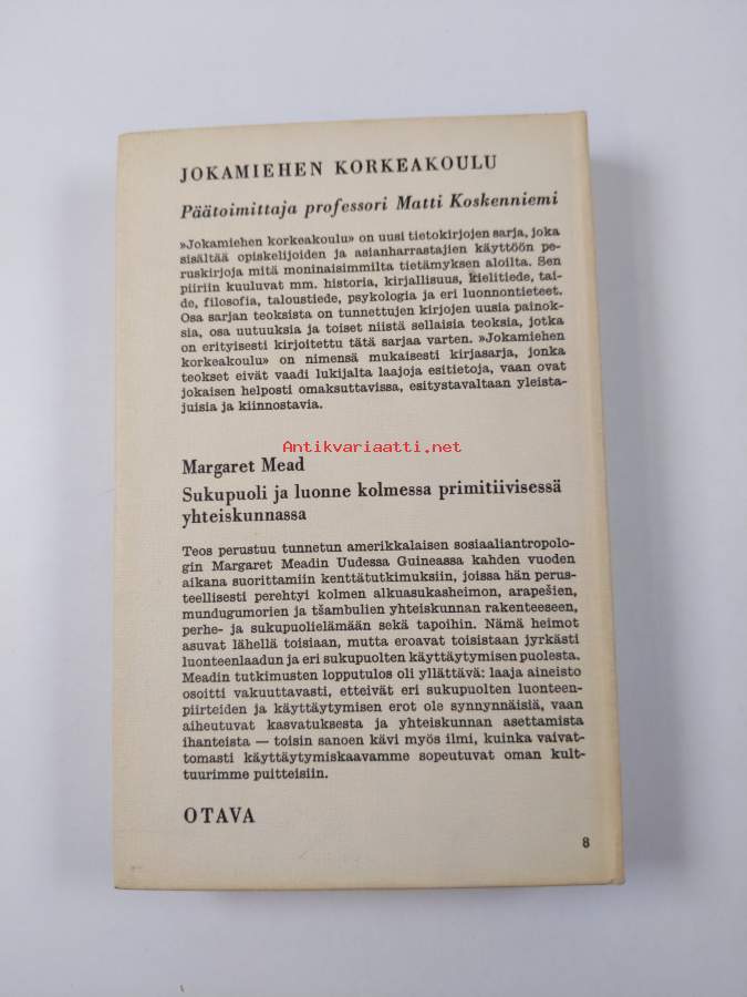 Muu(t) tekijä(t): Aarne SipponenSarja: Jokamiehen korkeakoulu 15Alkuteos: Sex and temperament in three primitive societies