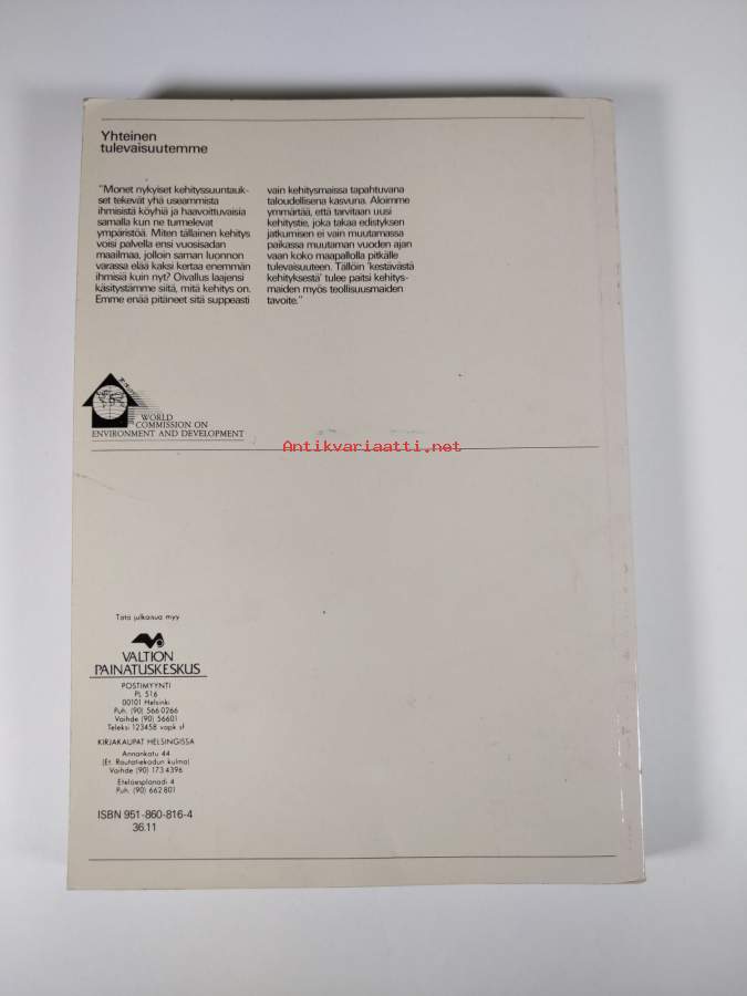 Alkuteos: Our common futureAsiasanat: taloudellinen kehitys, ympäristön tila, luonnonvarat, kaupungistuminen