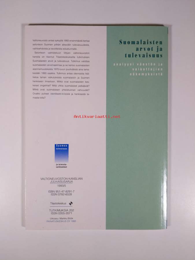 Sarja: Tutkimuksia / Tilastokeskus 202; Valtioneuvoston kanslian julkaisusarja 1993, 5Asiasanat: yhteiskuntakehitys, suomalaiset, asenteet, tulevaisuus, arvot