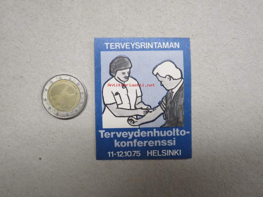 Terveysrintaman Terveydenhuoltokonferenssi 1975 Helsinki -vasemmistolainen 1970-luvun tuki- ja solidaarisuus- / varainkeruumerkki -tarra
